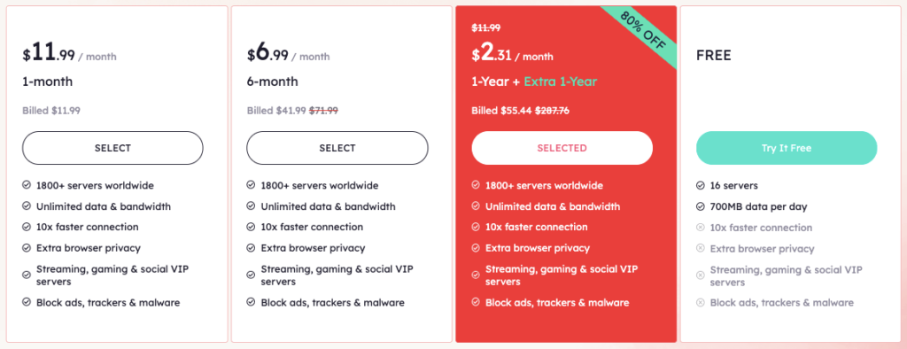 iTop VPN یک طرح واحد دارد که می تواند به صورت ماهانه، 6 ماهه و سالانه پرداخت شود. اگر مدت زمان بیشتری را انتخاب کنید، تخفیف بیشتری دریافت خواهید کرد. ما به خصوص دوست داریم که قیمت آنها برای ارائه خدمات 1 ساله آنها چقدر پایین است. این طرح سالانه همچنین با یک سال اضافی ارائه می شود که به مشترک خود حدود 80٪ تخفیف نسبت به قیمت اصلی می دهد.