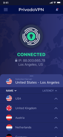 PrivadoVPN دارای مکان های سرور در 42 کشور در مناطق عمومی جغرافیایی زیر است: آمریکای شمالی ، اقیانوسیه ، آمریکای جنوبی ، مرکزی آمریکا ، آسیای شرقی ، آسیای جنوب شرقی و اروپا.