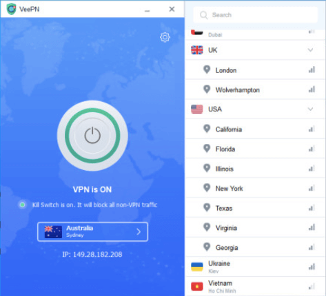 . ]SmartVeePN – پروتکل مخصوص داخلی که به کاربران اجازه میدهد از محدودیتهای جغرافیایی که با دیگر پروتکلهای VPN قبلی امکانپذیر نبودند، عبور کنند. این بهترینهای OpenVPN و IKEv2 را ترکیب میکند، اما ممکن است در همه شبکهها کار نکند.
