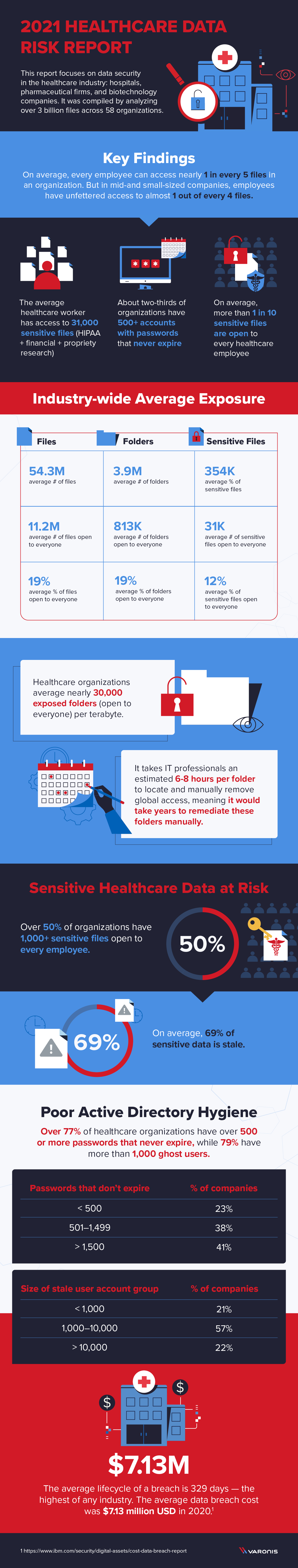 برای روشن کردن امنیت اطلاعات در فضای علوم زیستی ، ما گزارش خطر اطلاعات سلامت 2021 را تهیه کردیم. ما وضعیت امنیت داده ها – درون ، ابر و محیط های ترکیبی – را برای سازمان های بهداشتی از جمله بیمارستان ها ، بیوتکنولوژی و شرکت های دارویی بررسی می کنیم. ما یک نمونه تصادفی از ارزیابی ریسک داده را برای 58 شرکت تجزیه و تحلیل کردیم – و در مجموع 3 میلیارد پرونده – برای تعیین چگونگی قرار گرفتن در معرض و در معرض خطر بودن داده ها.