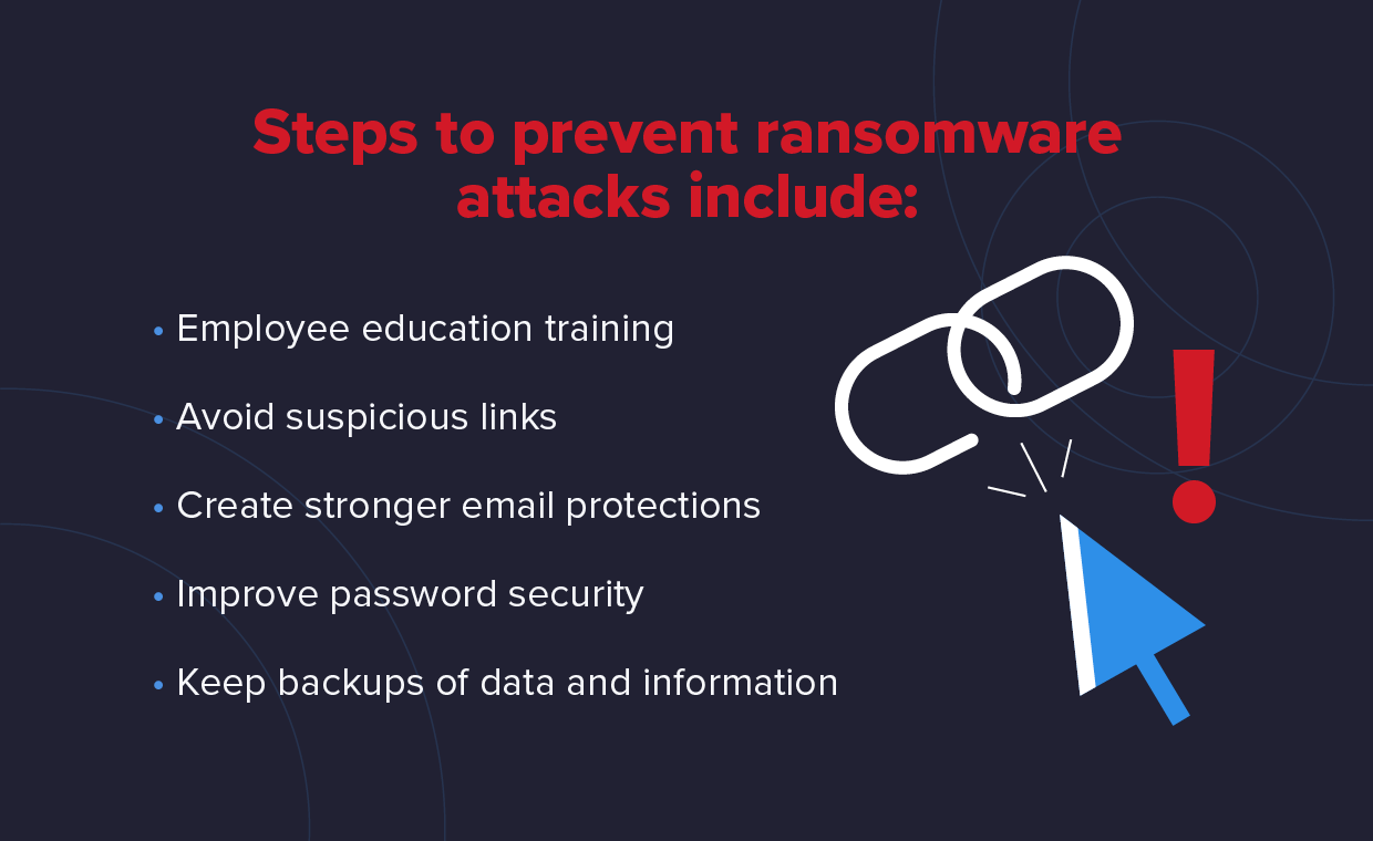 اطمینان حاصل کنید که برای جلوگیری از حمله و از بین رفتن داده ها در سازمان خود اقدامات لازم را انجام می دهید. در اینجا چند روش موثر برای جلوگیری از تأثیر باج افزار در شرکت شما وجود دارد.