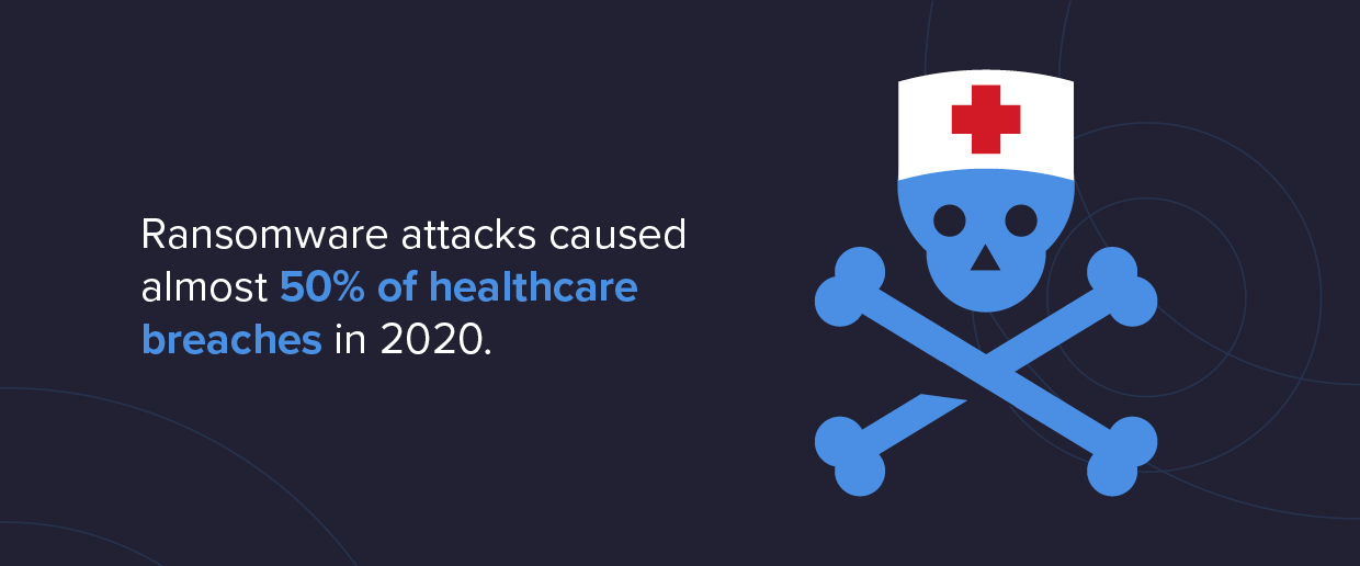 - حملات Ransomware مسئول تقریباً 50٪ از کل موارد نقض داده های مراقبت های بهداشتی در سال 2020 بود. ( بهداشت و خدمات انسانی ، 2021)